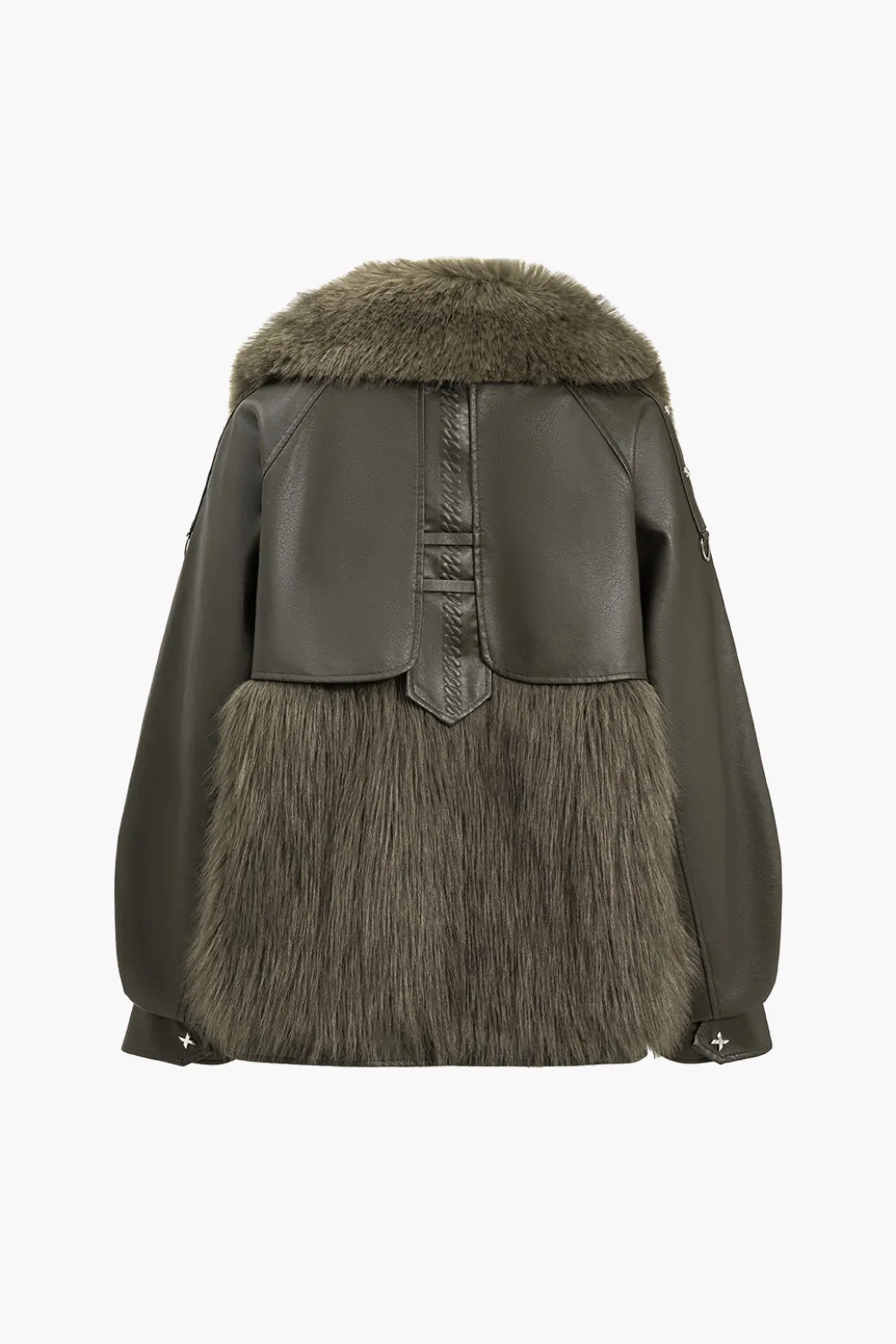- Fabric: Faux Leather, Wool Blend