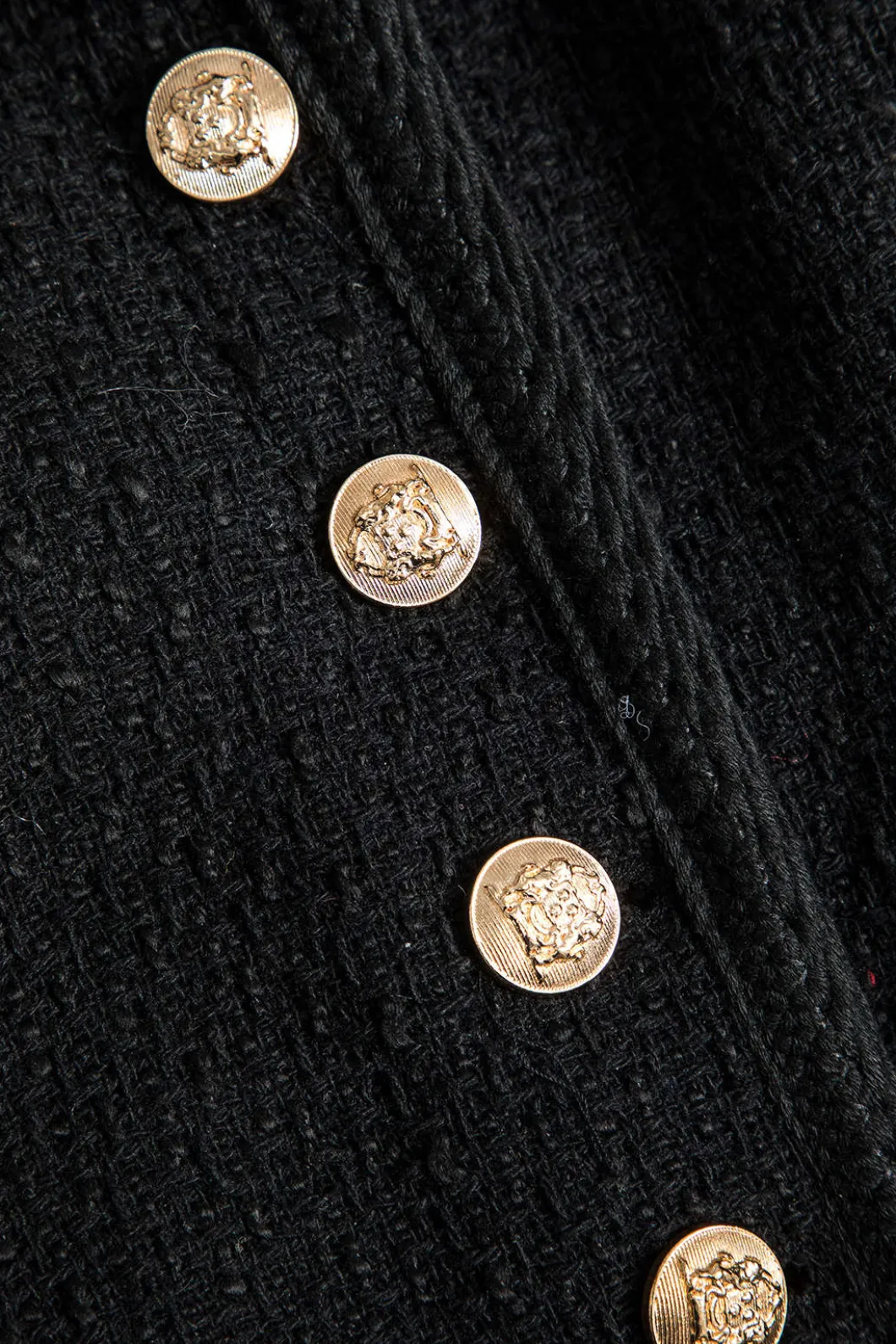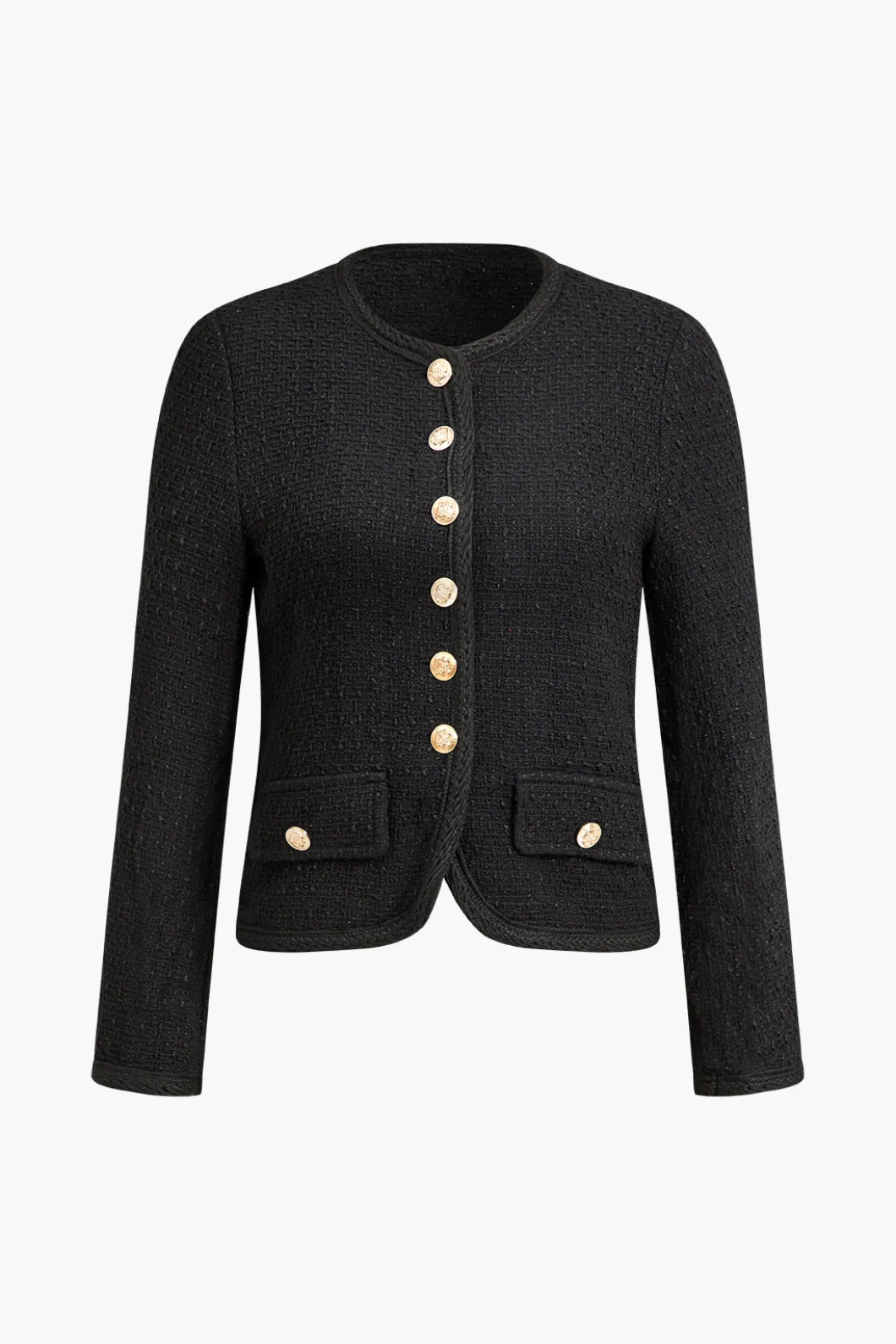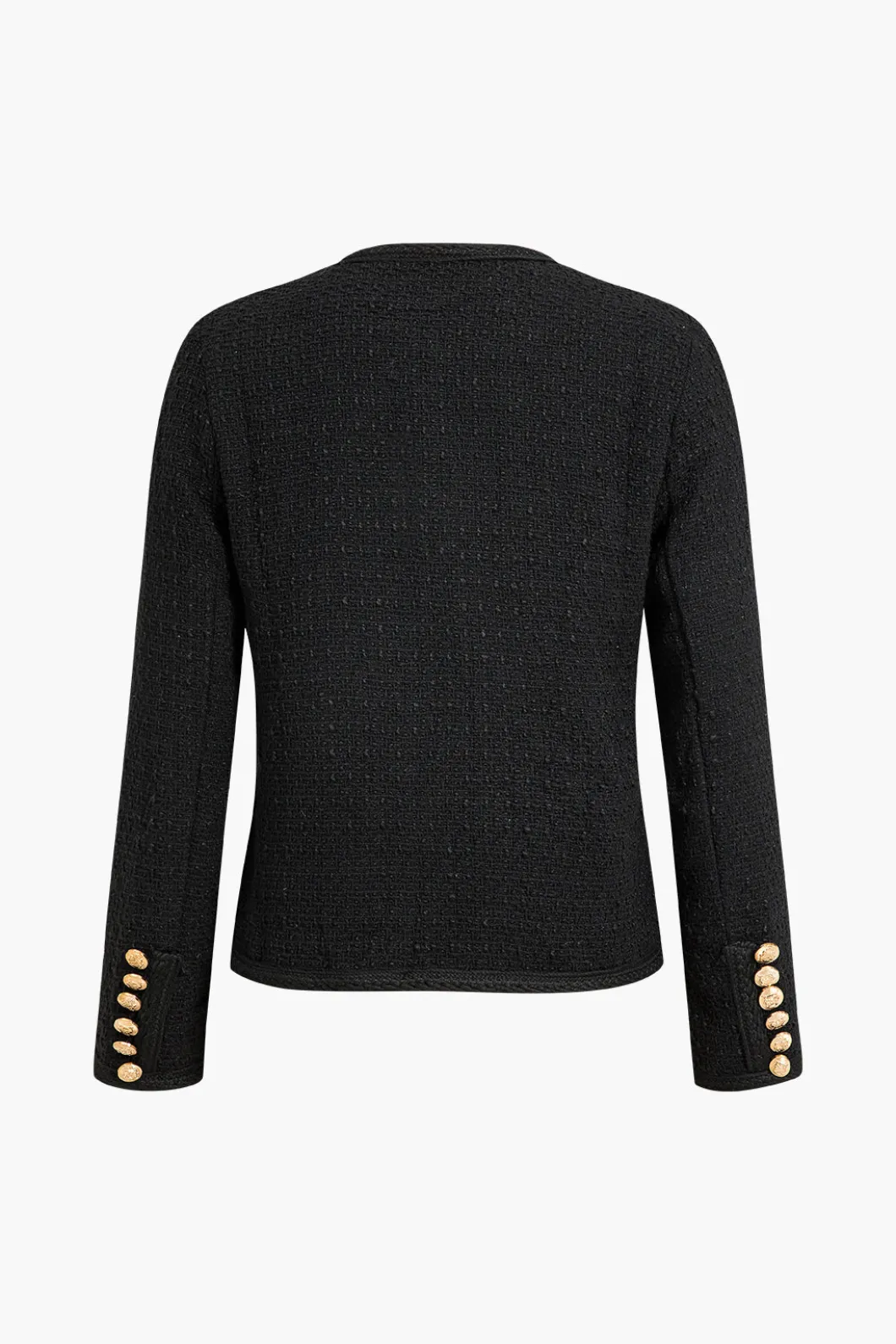 DetailsOccasion: CasualCategory: OuterwearsComposition: 100% PolyesterSheer: Not SheerFabric: TweedColor: BlackMeasured …