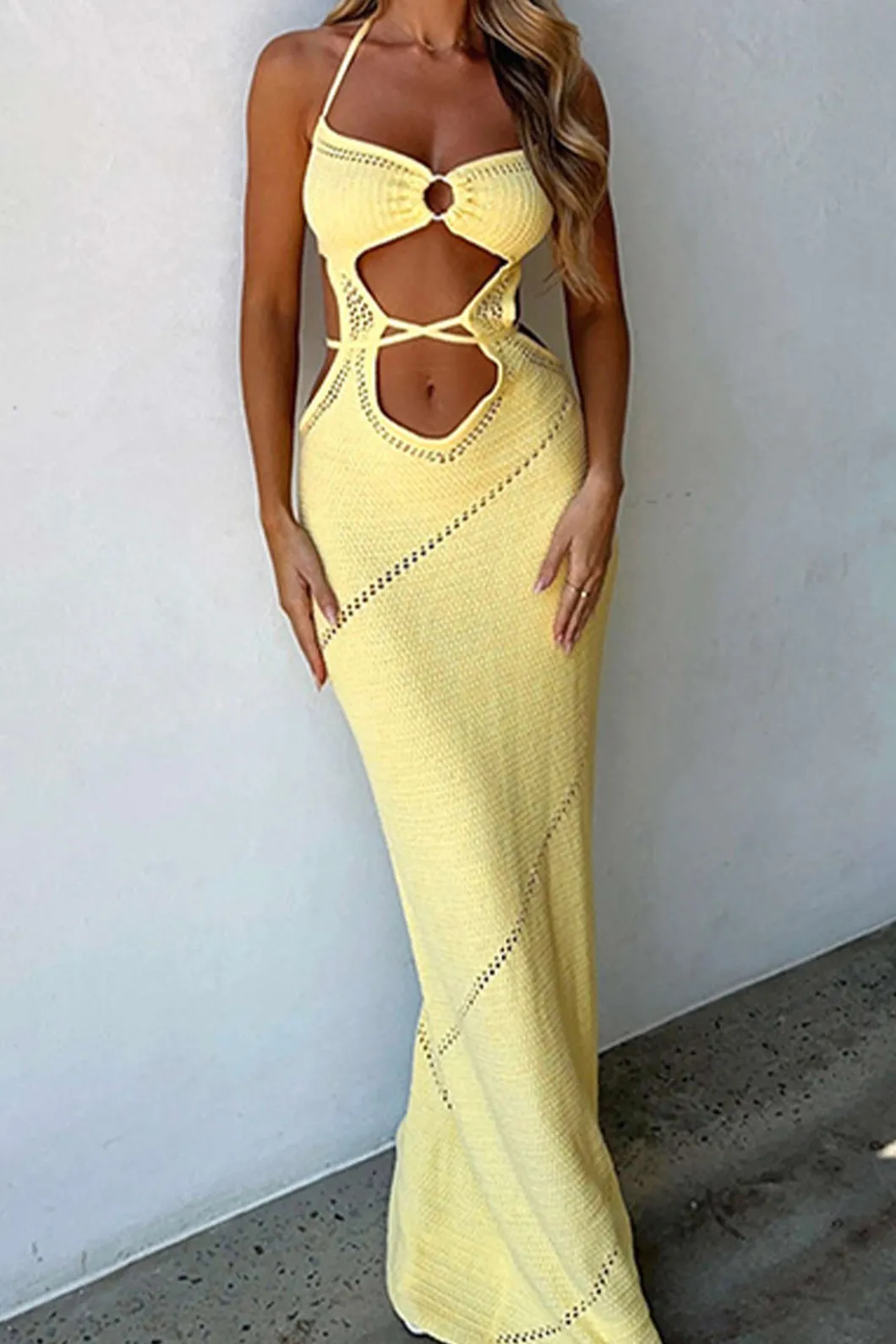 DetailsOccasion: VacationCategory: KnitwearsComposition: 100% AcrylicSheer: SheerFabric: KinitColor: YellowMeasured in s…