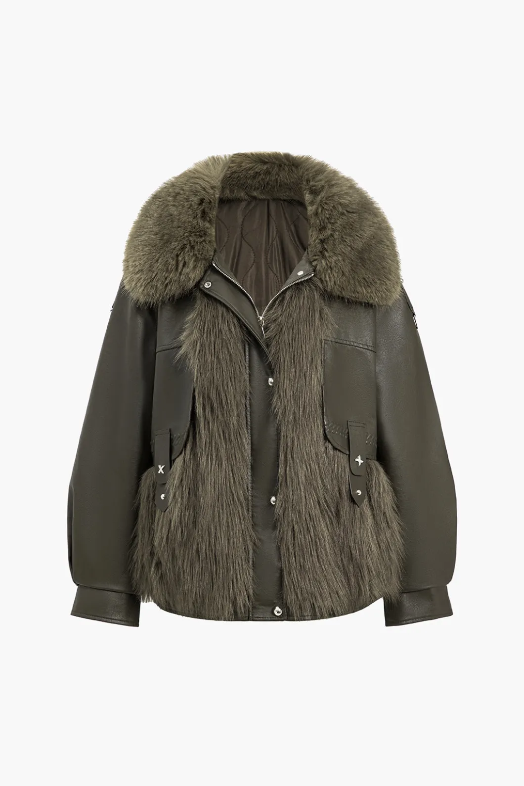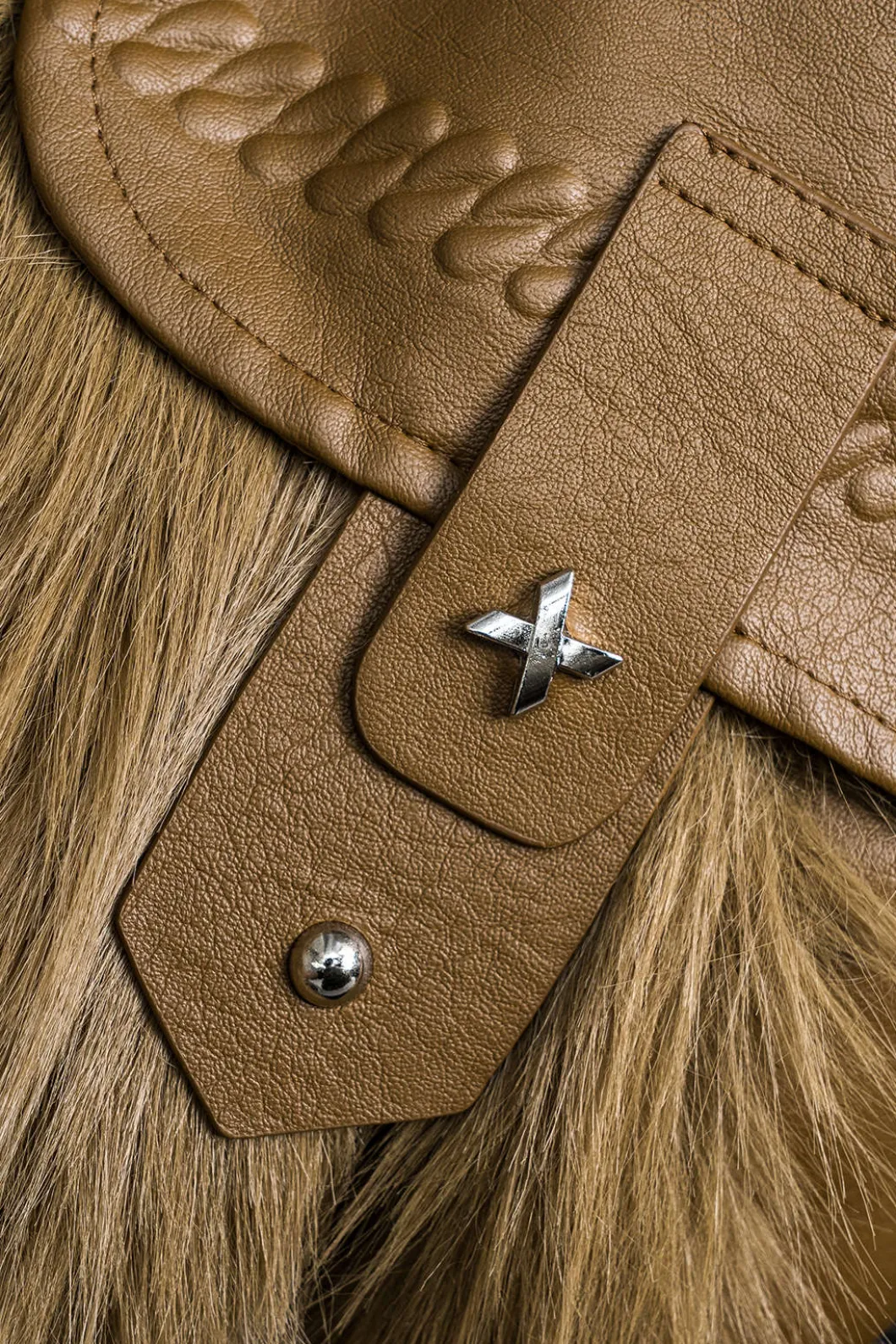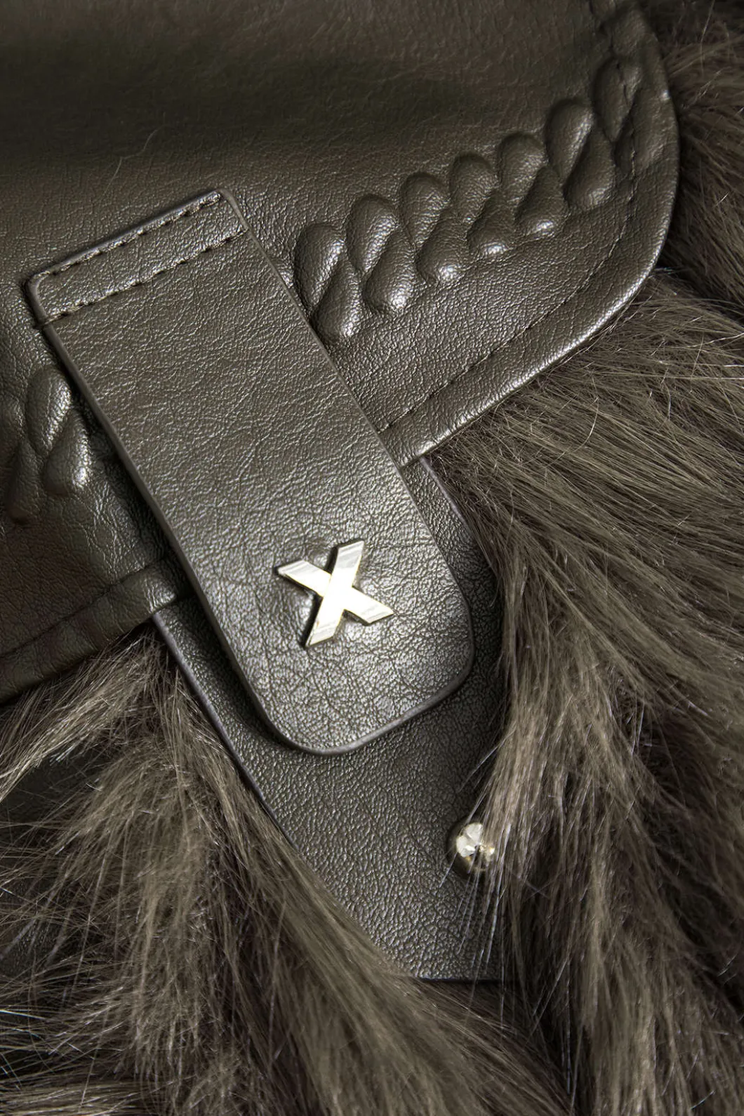 - Fabric: Faux Leather, Wool Blend