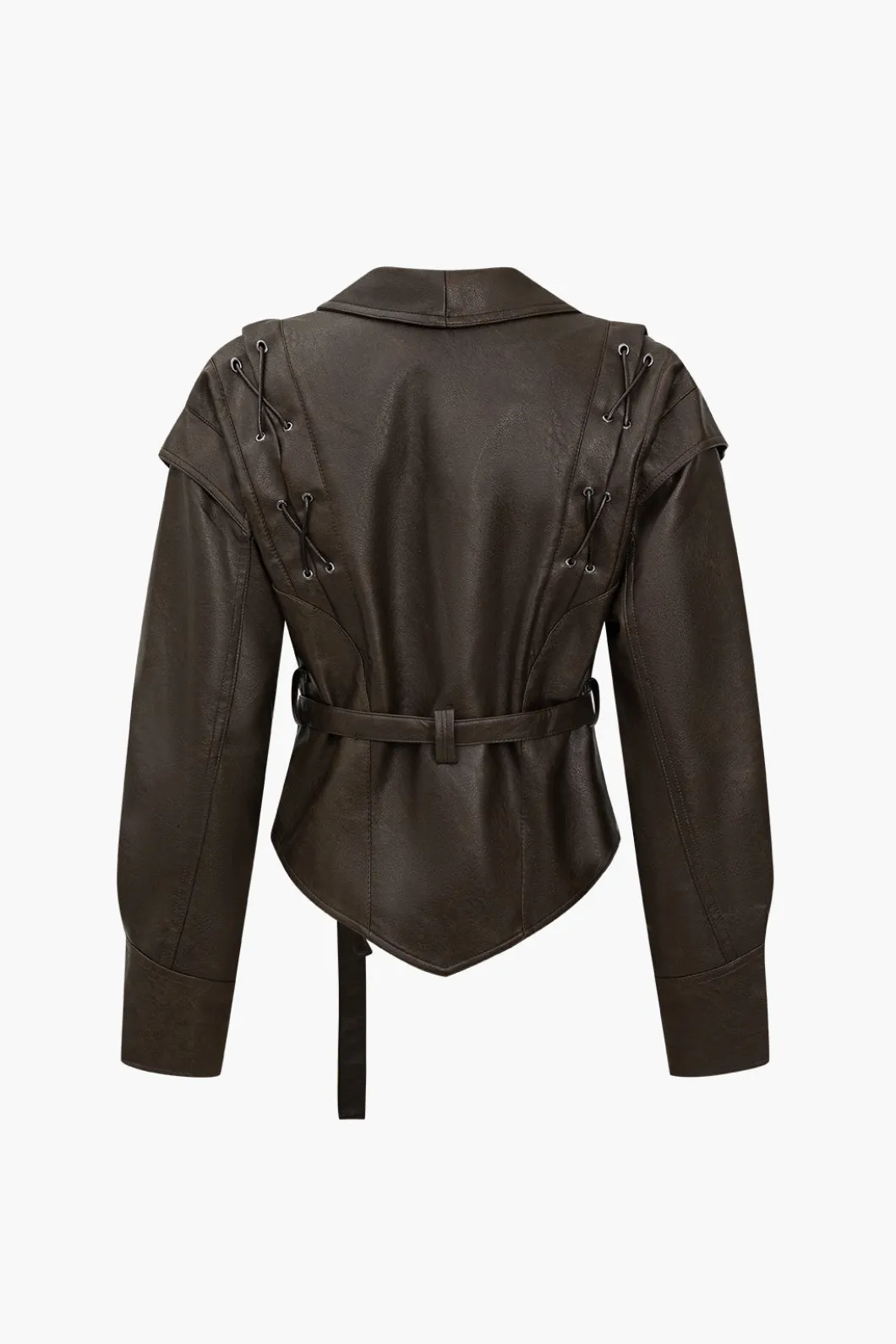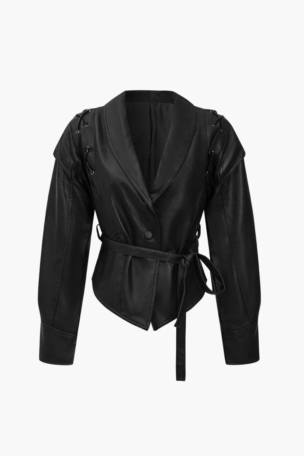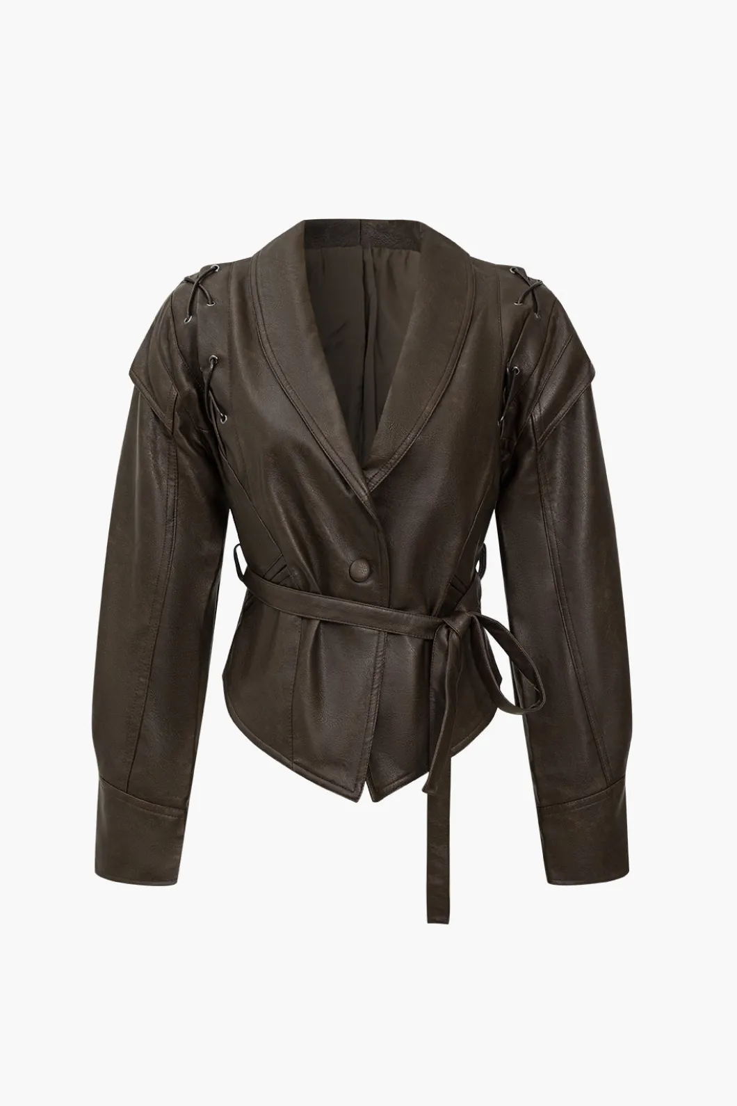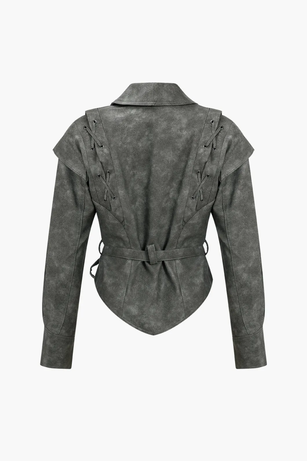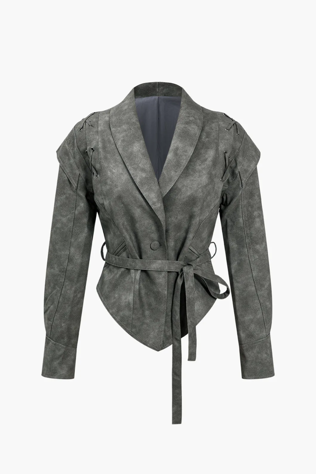 DetailsOccasion: CasualCategory: OuterwearsComposition: 100% PolyesterSheer: Not SheerFabric: Faux LeatherColor: GrayMea…