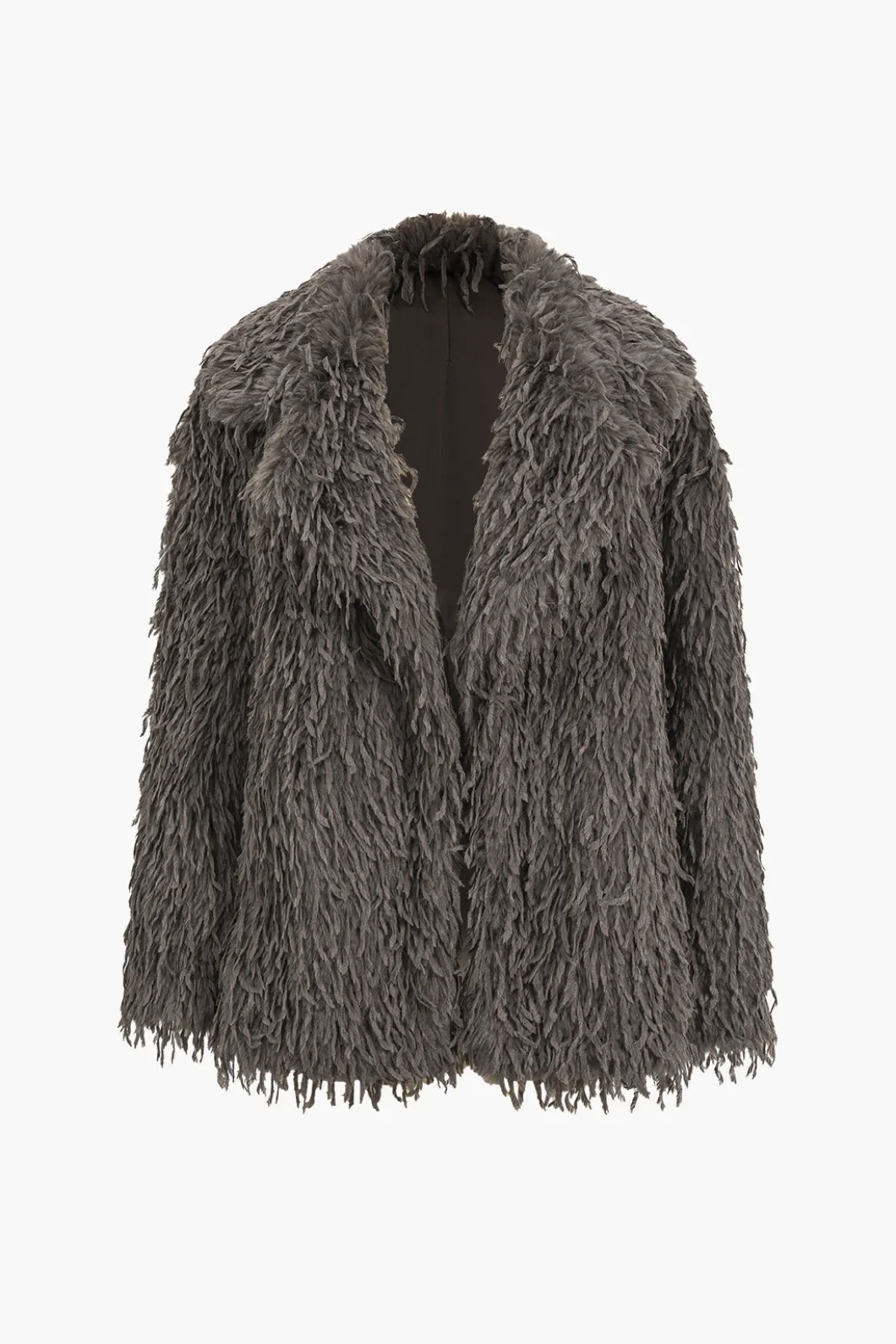 DetailsOccasion: CasualCategory: OuterwearsComposition: 100% PolyesterSheer: Not SheerFabric: Faux FurColor: GrayMeasure…
