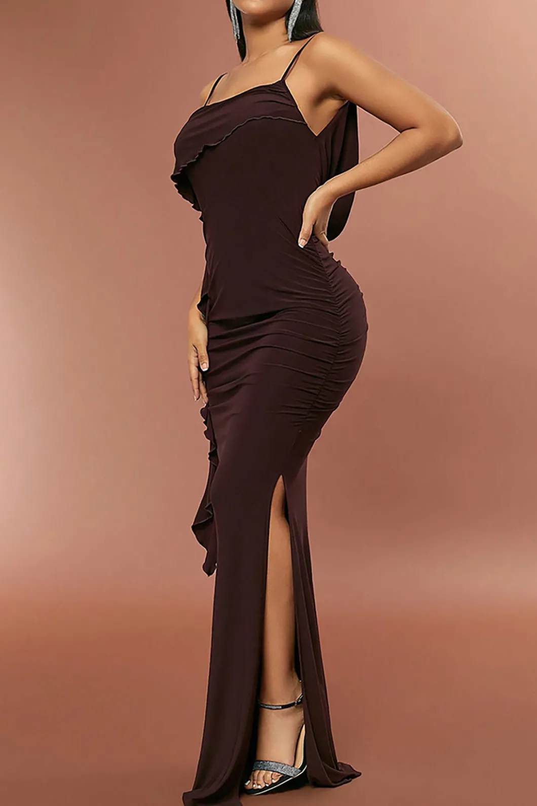 DetailsOccasion: Special OccasionCategory: DressesComposition: 100% PolyesterSheer: Not SheerFabric: JerseyColor: BrownM…