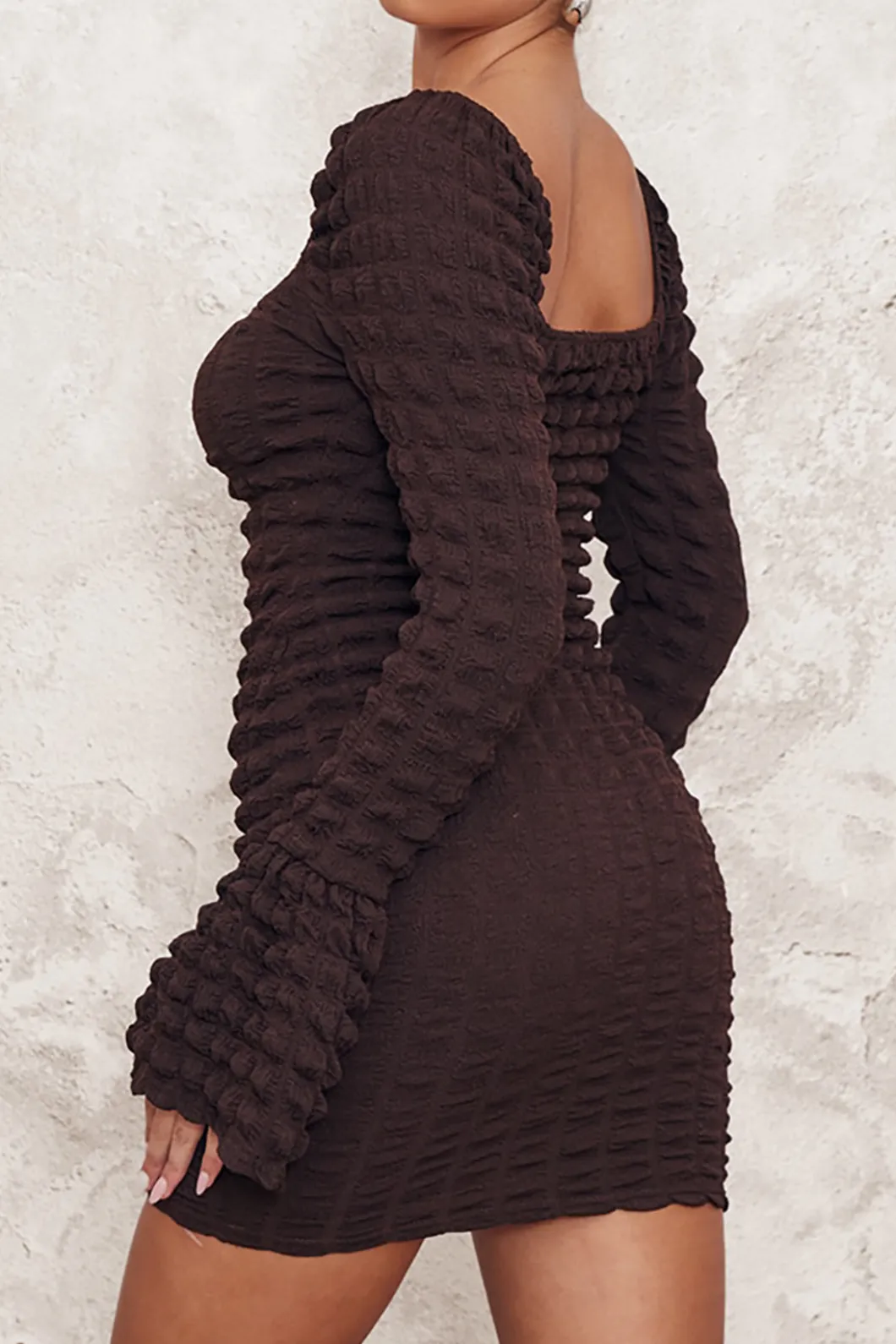 DetailsOccasion: CasualCategory: DressesComposition: 95% Polyester, 5% ElastaneSheer: Not SheerFabric: TexturedColor: Br…